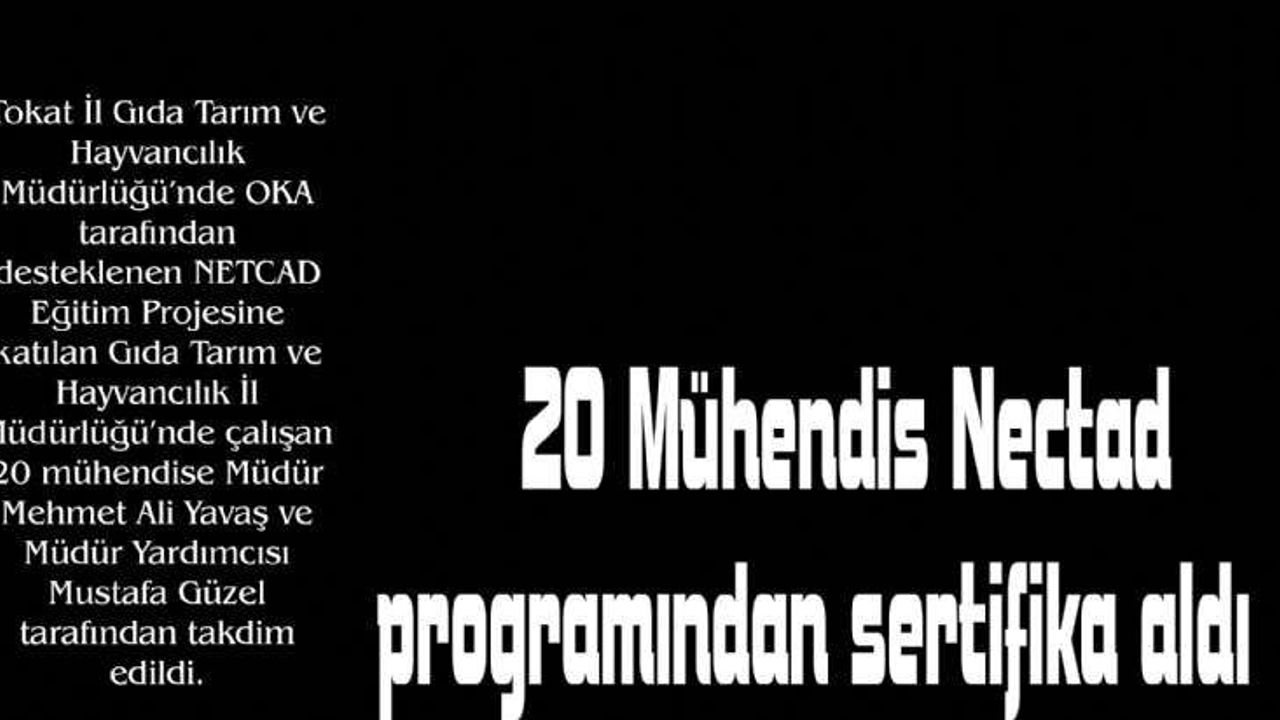 Tokat İl Gıda Tarım ve Hayvancılık Müdürlüğü tarafından hazırlanan, Kalkınma Bakanlığı`nın genel koordinasyonunda Orta Karadeniz Kalkınma Ajansı tarafından finanse edilen TR83/2012/TD/056 referans numaralı Teknik Destek Programı kapsamında, gerçekleştirilen NETCAD Eğitim Projesine katılıp sertifika alan kişiler: T.A.A.D. Şube Müdürü Uğur Sayan, Gıda Ve Yem Şube Müdürü H.Bayram Ayata, Mühendisler Şeyda Topbaş, Salih Ateş, Kürşad Kılınç, Şükrü Yılmaz, Ramazan Güneş, Caner Aymak, Ali Taşpınar, Şükran Ağaoğlu, Gülin Karan, Ahter Ergan, Emine Küçüker, Ayşe Zengin, Sevgi Ayten, Melih Nadir, Mitat Duran, Turhan Karacaoğlu, Serdar Gencer, Cemal Balcı, Teknik Destek Programı kapsamında, gerçekleştirilen NETCAD Eğitim Projesi sonrası kursiyerlere İl Müdürü Mehmet Ali Yavaş ve İl Müdür Yardımcısı Mustafa Güzel tarafından sertifikaları dağıtıldı.