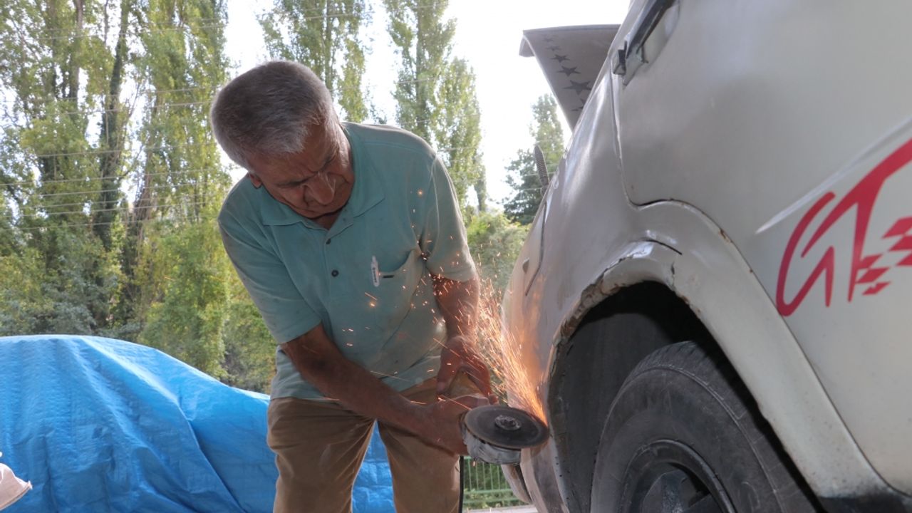 Moral bulması için mesleğine dönmesini isteyen oğlunun ikna etmesi sonucu çalışmaya yeniden başlayan 73 yaşındaki Altındağ, yarım asırdan fazladır kaporta ve çamurluk düzeltme işini titizlikle sürdürüyor.