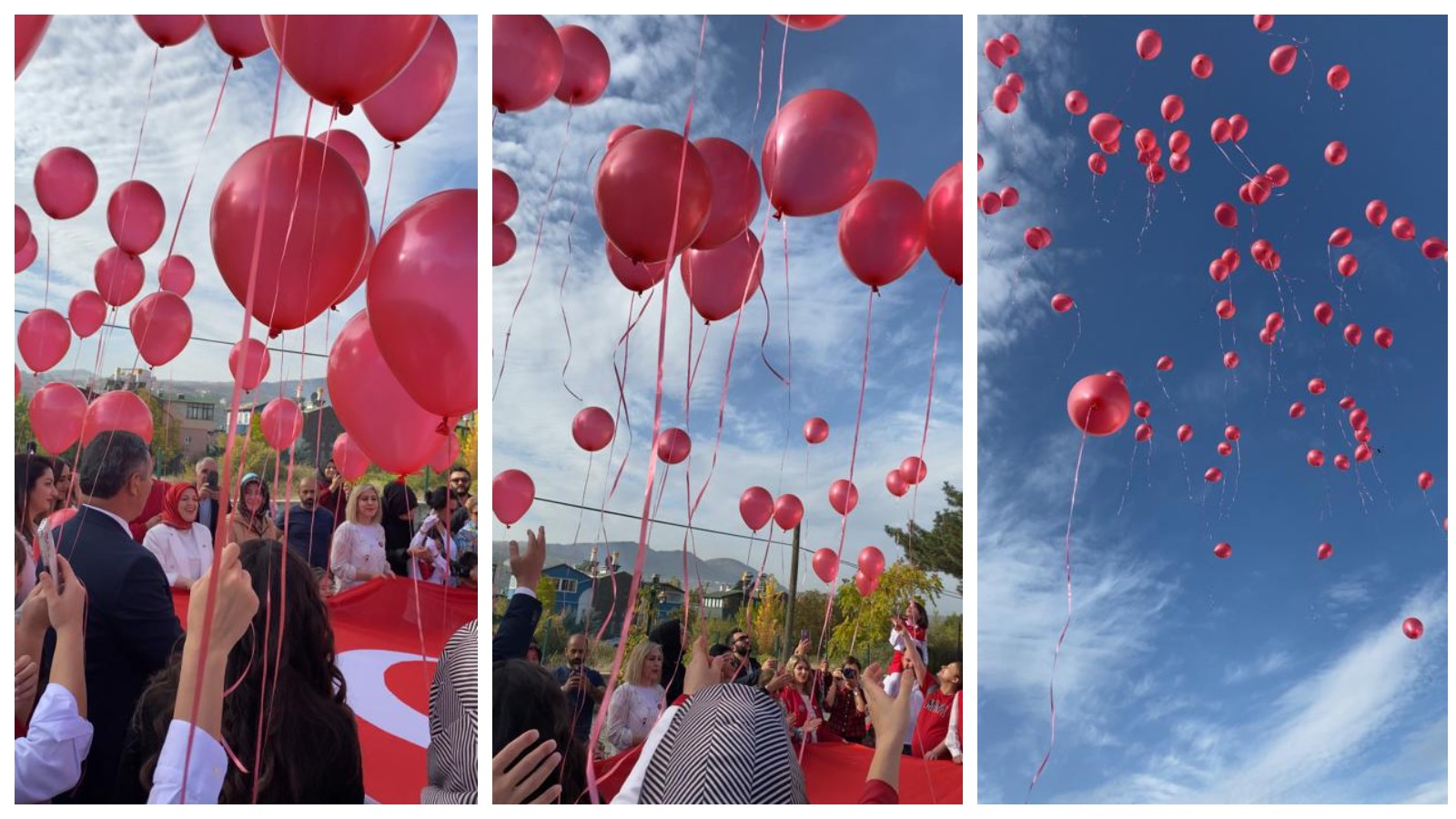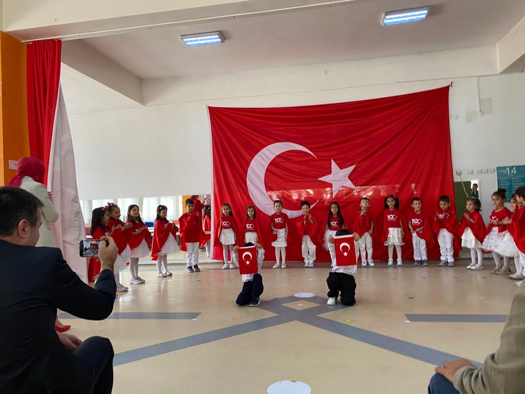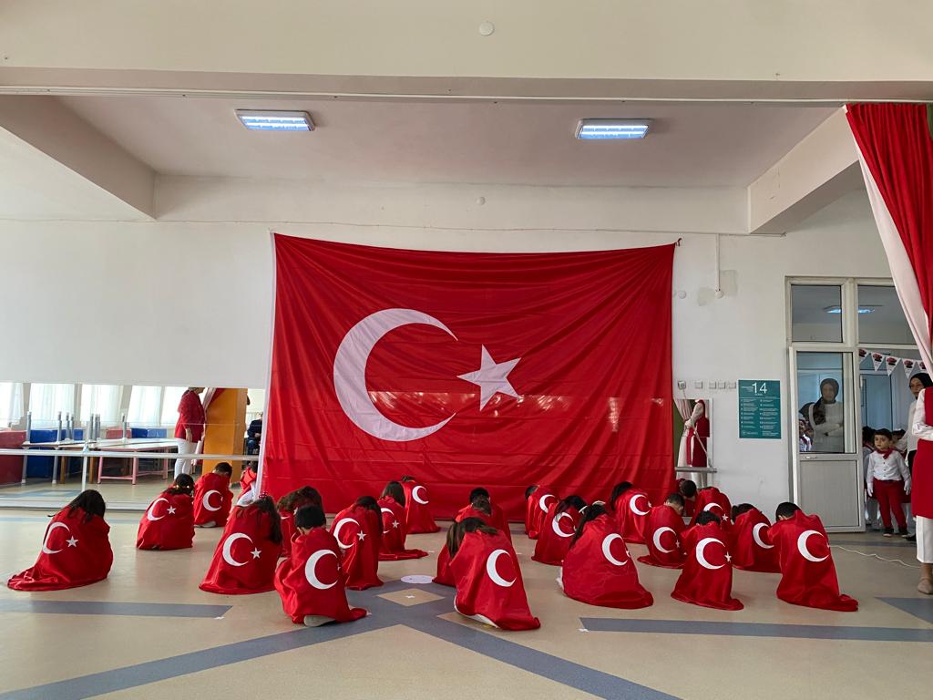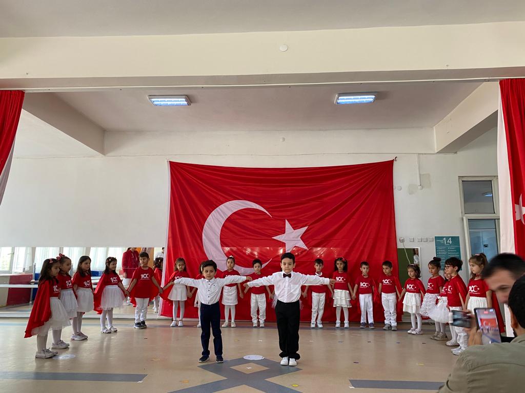 Etkinliğin sonunda minikler, aileleri ve öğretmenleri ile birlikte Cumhuriyetin 100. yılı dolayısıyla gökyüzüne 100 adet kırmızı balon bıraktı.