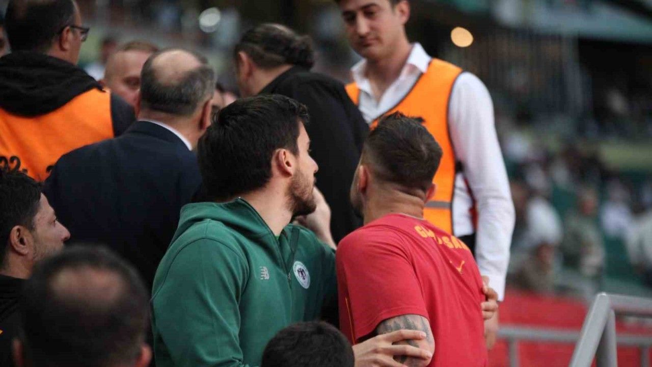 Konyaspor, Ziraat Türkiye Kupası Yarı Final mücadelesinde Galatasaray’ı ağırlıyor. Mücadele öncesi zemini incelemek için sahaya çıkan Galatasaraylı Abdülkerim Bardakcı, Konyasporlu taraftarların tepkisi ile karşılaştı. Bu durum üzerine Bardakcı, tribüne gelerek taraftarlarla tartıştı. Tartışmanın büyümesini de Konyaspor’un forveti Umut Nayir önledi. Sarı-kırmızılı futbolcu daha sonra soyunma odasına gitti.