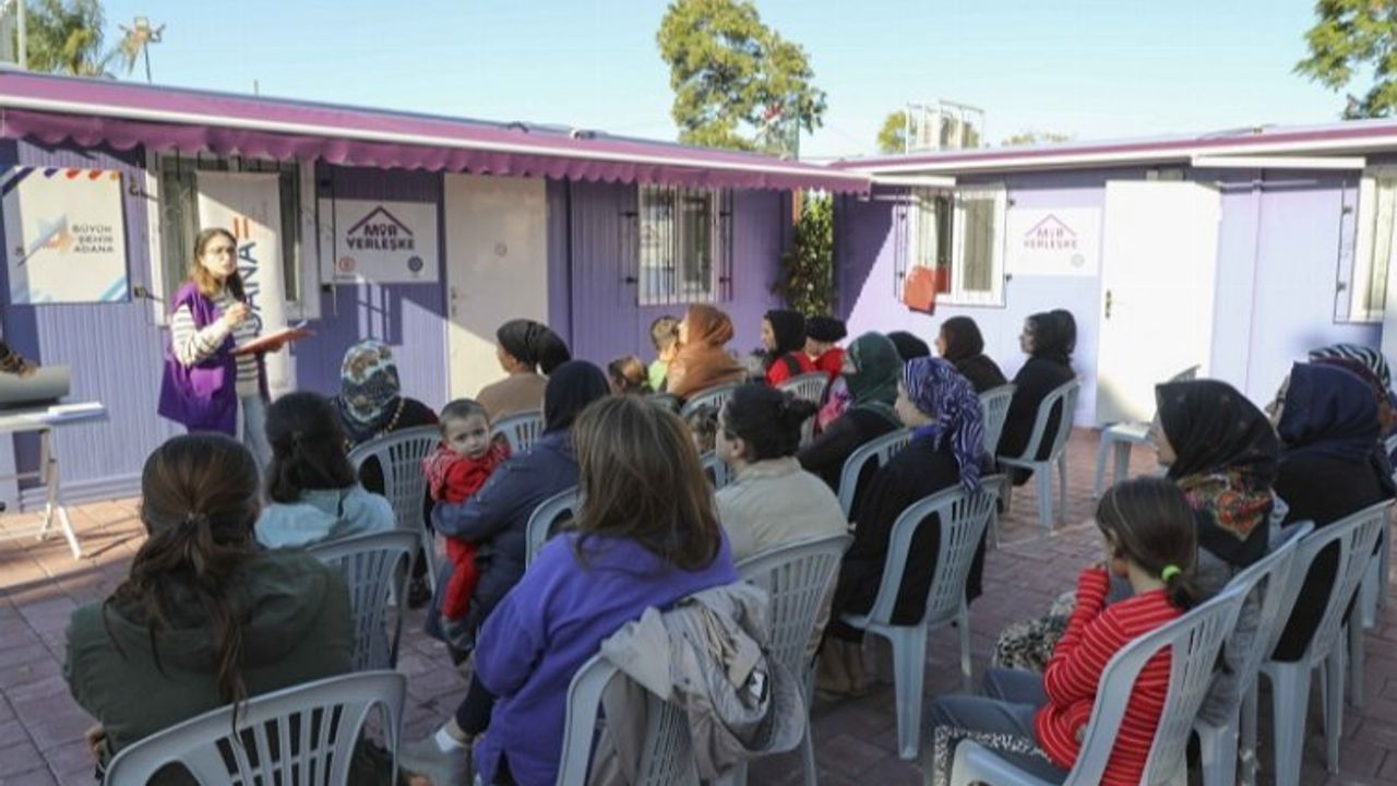 Toplumsal Cinsiyete Dayalı Şiddete Karşı Mücadele için 16 Günlük Aktivizm kapsamında, Adana Büyükşehir Belediyesi Kadın ve Aile Hizmetleri Dairesi Başkanlığı; Kadına Yönelik Şiddete Karşı Farkındalık Atölyesi düzenlendi.ADANA (İGFA) - BOYNER tarafından desteklenen Türkiye Kadın Dernekleri Federasyonu iş birliği ile Dağlıoğlu Mahallesi, Güney Yıldızı Parkı’nda kurulan Mor Yerleşke’de kadınlara, kadına yönelik siddetle mücadeleye yönelik bilgi aktarıldığı atölye düzenlendi. Kadın ve Aile Hizmetleri Daire Başkanlığı meslek elemanları ve Mor Yerleşke’de görev alan sağlık personeli tarafından, Mor Yerleşke’den ve Kadın ve Aile Hizmetleri Dairesi Başkanlığı'ndan hizmet alan 21 kadına şiddet konusunda ve yasal hakları ile ilgili bilgilendirme yapıldı.