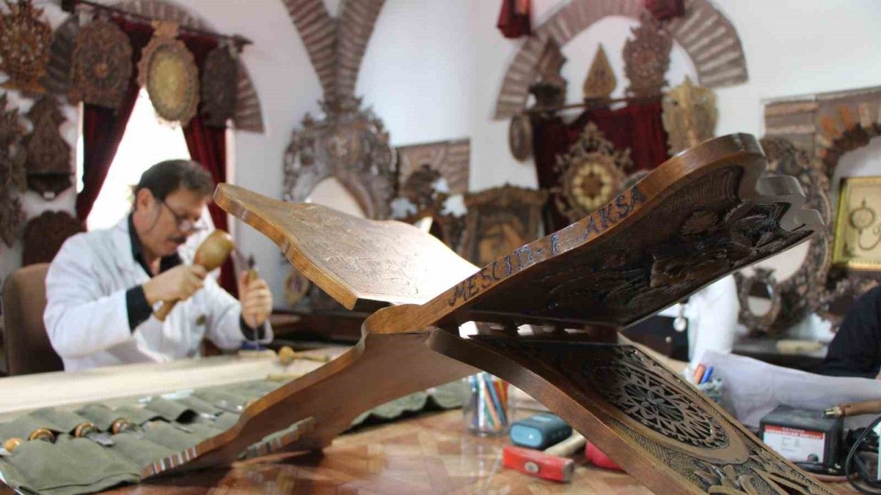 Amasya’da yaşayan bir ahşap oyma ustası, el emeği göz nuruyla işlediği rahleyi Mescid-i Aksa’nın özgürlüğüne kavuşacağı gün için saklıyor.