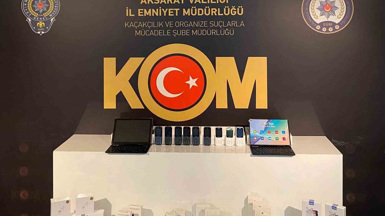 Aksaray’da kaçakçılıkla mücadele çerçevesinde birçok faaliyet yürüten Aksaray İl Emniyet Müdürlüğü Kaçakçılık ve Organize Suçlarla Mücadele (KOM) Şubesi ekipleri, 6 ayrı iş yerinde kaçak ürünler bulunduğu bilgisine ulaştı. Bunun üzerine Aksaray Cumhuriyet Başsavcılığı koordinesinde harekete geçen KOM ekipleri 6 ayrı adrese operasyon düzenledi. Operasyonlarda 5 şüpheli yakalanarak gözaltına alınırken, iş yerlerinde yapılan aramalarda gümrük kaçağı 12 adet cep telefonu, 2 adet tablet, 5 adet powerbank, 530 paket sigara, bin 101 adet cinsel içerikli ürün, 10 adet kulaklık ve 14 adet adaptör ve şarj cihazı, 3 kilogram nargile tütünü, 6.5 kilo nargile kömürü, 25 kilo kıyılmış tütün, 5 adet kesilmiş bandrol, 9 bin 40 adet dolu makaron, 36 bin 400 boş makaron ele geçirildi.
