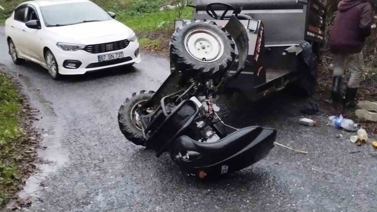 Kaza, Alaplı'ya bağlı Kaymas Köyü ile Yeniköy arasındaki yol ayrımında meydana geldi. Pat patta bulunan sürücü R.C. ile yolcu olarak bulunan Y.C.U., henüz bilinmeyen bir nedenle araçtan atlayarak yol kenarına düştü.