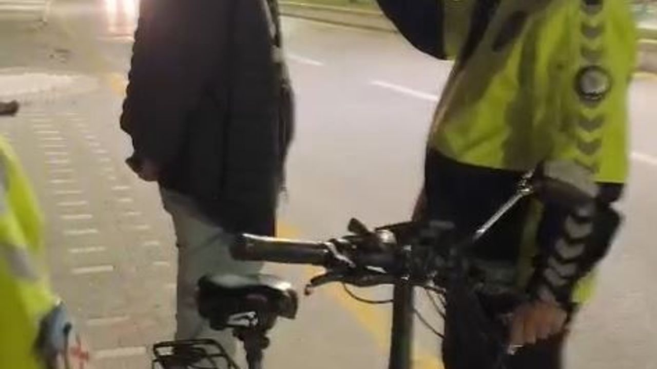 Polis ekiplerine, ‘Bana ceza yazamazsınız bisiklet kullanıyorum’ diye söylemde bulunan Salih K. cezadan kaçamadı. Alkollü hiçbir aracın kullanılamayacağını söyleyen trafik polisleri "Alkollü eşek bile kullanamazsın, sadece yürüyebilirsin" dedi.