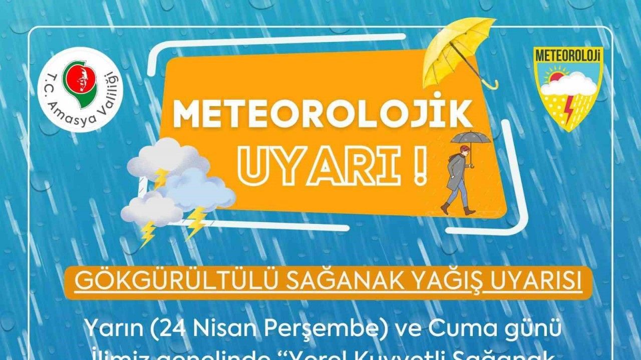 Amasya Valiliği, yerel kuvvetli yağışlara bağlı olarak sel, su baskını ile ulaşımda aksamalar gibi olumsuzluklara karşı dikkatli ve tedbirli olunmasını istedi.