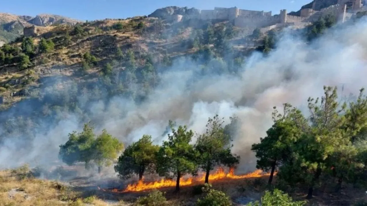 Rüzgarın etkisiyle kısa sürede yayılan alevlere ekipler müdahale etmeye çalışıyor. Dumanlar etrafa yayıldı.