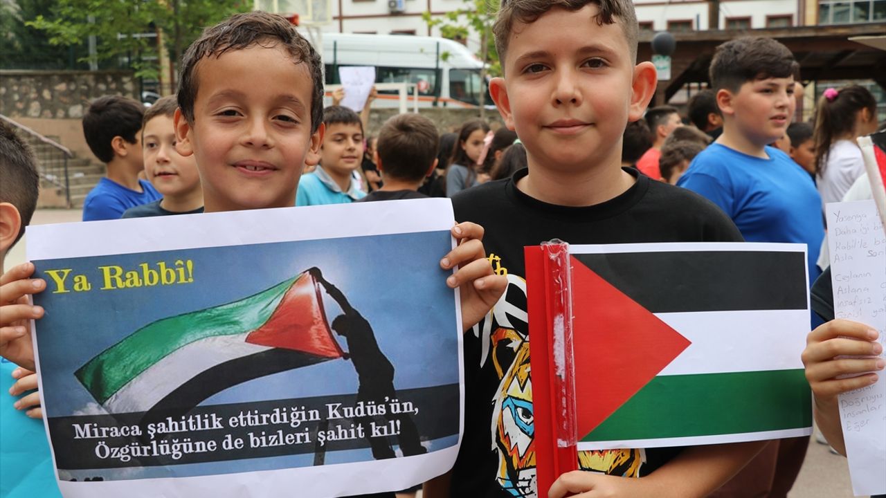 AMASYA (AA) - Amasya'da ilkokul, ortaokul ve lise öğrencileri, İsrail'in Filistin'e yönelik saldırılarına tepki gösterdi.