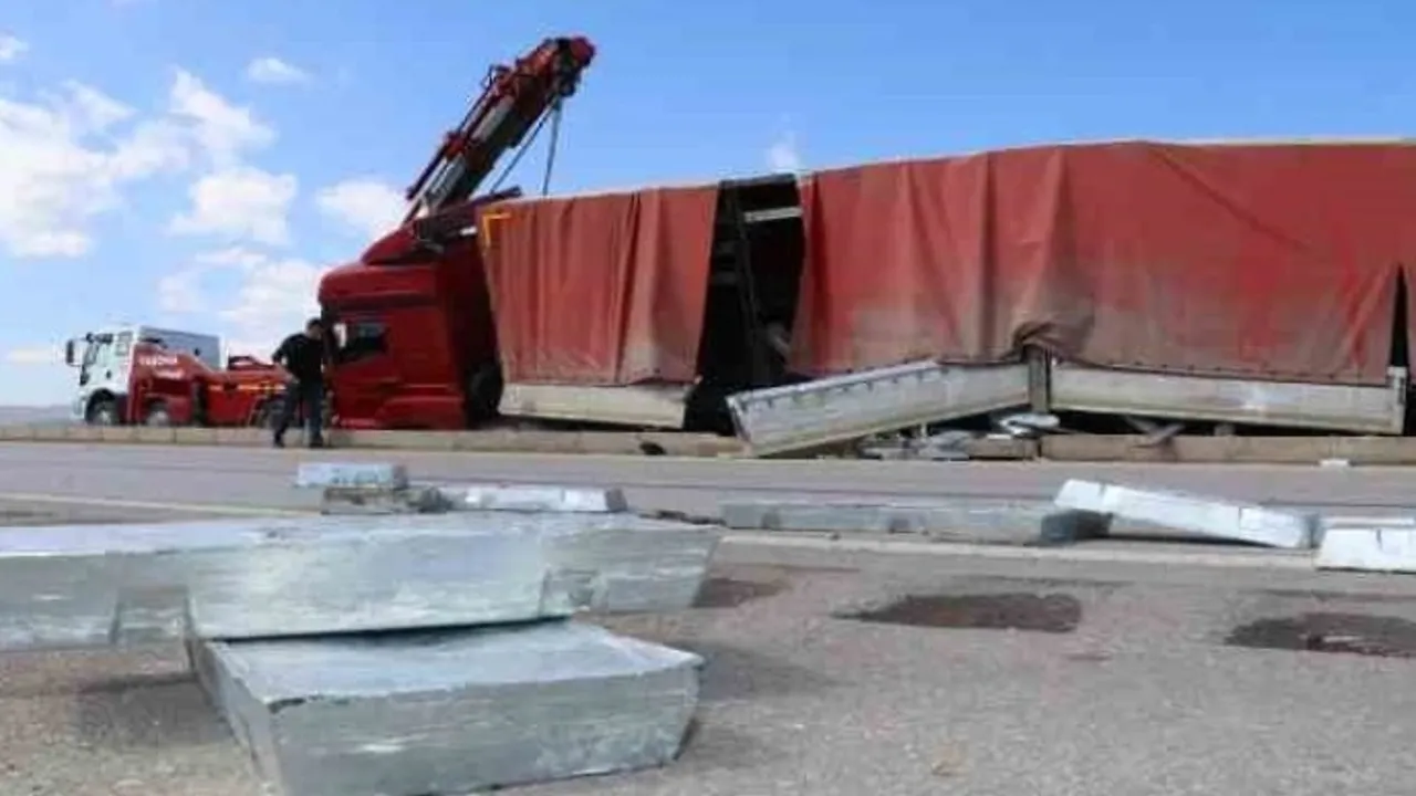 Amasya'nın Taşova ilçesinde tırın refüje çıktığı kazada sürücü yaralandı.
