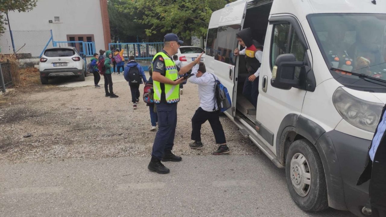 Jandarma ekipleri tarafından öğrenci servislerinde yapılan denetimde, çocuklara servise binme inme, servis içindeki tutum ve davranışlar ile emniyet kemeri kullanılmasının önemi anlatıldı.