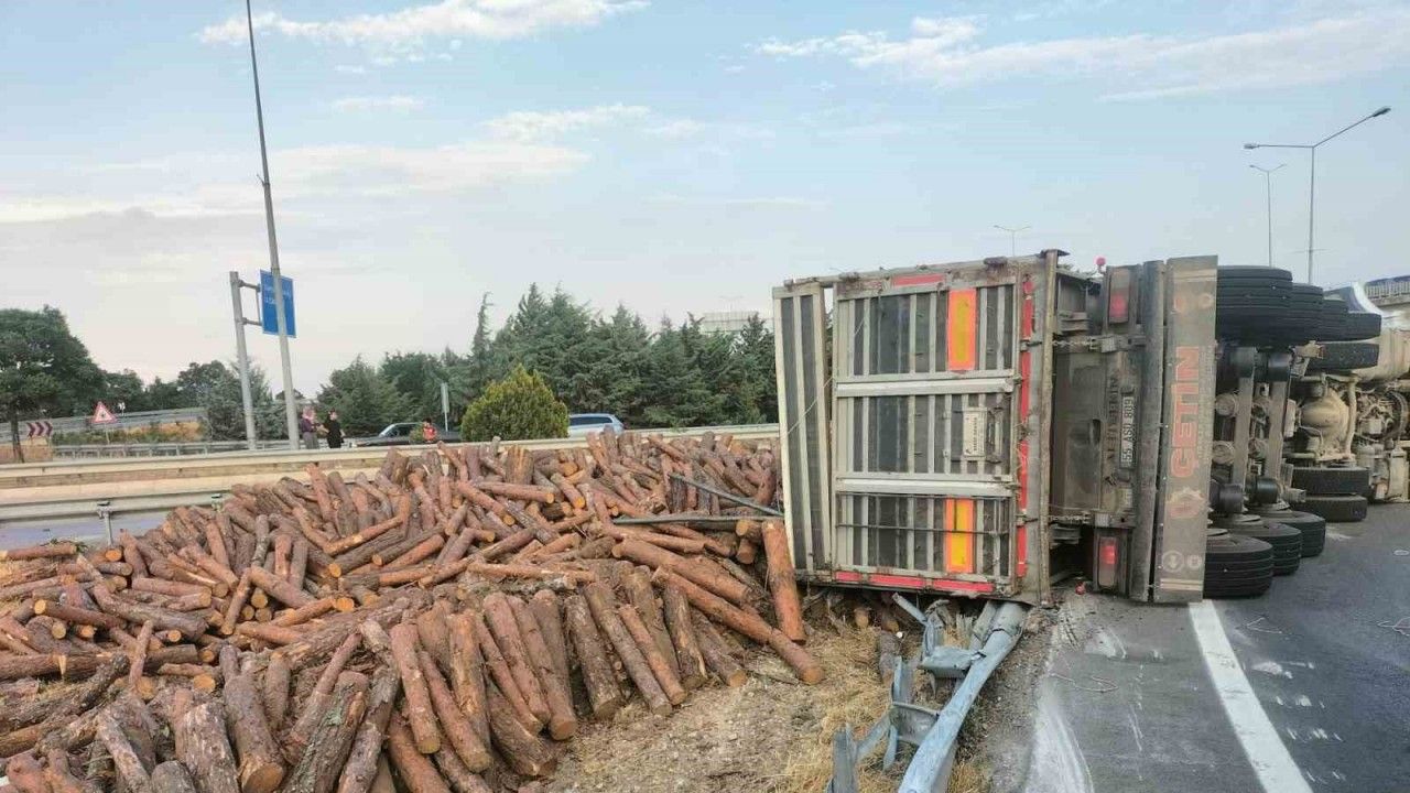 Amasya’nın Merzifon ilçesinde tomruk yüklü tır, kontrolden çıkarak devrildi. Yaralanan sürücü, hastaneye kaldırılarak tedavi altına alındı.