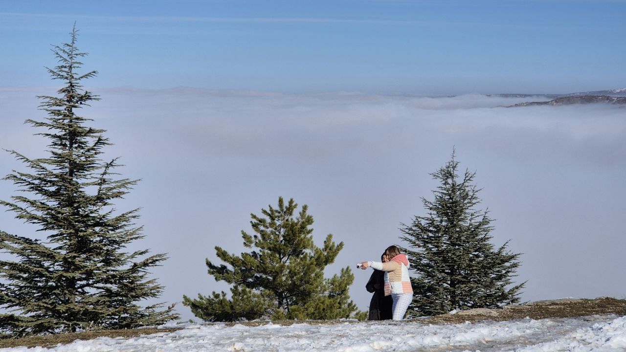 Yerleşim alanının bulunduğu vadiyi tamamen kaplayan sis, güzel görüntüler oluşturdu.