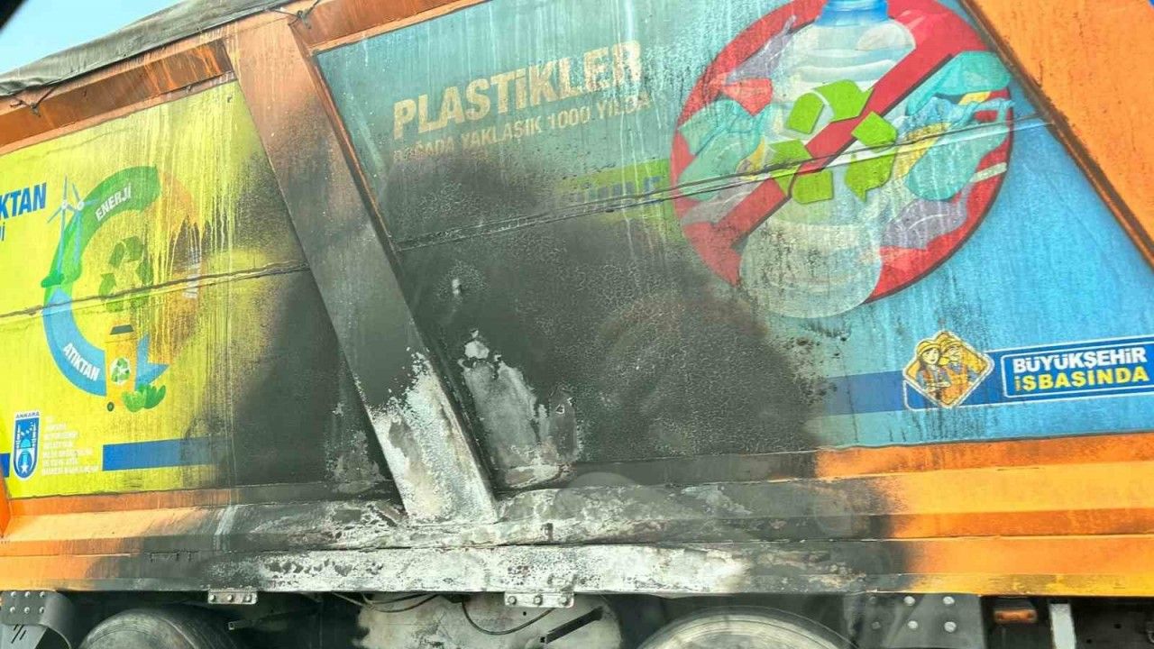 Ankara Büyükşehir Belediyesi’ne (ABB) ait plastik atık taşımak amacıyla kullanılan tırın dorsesi alev aldı.