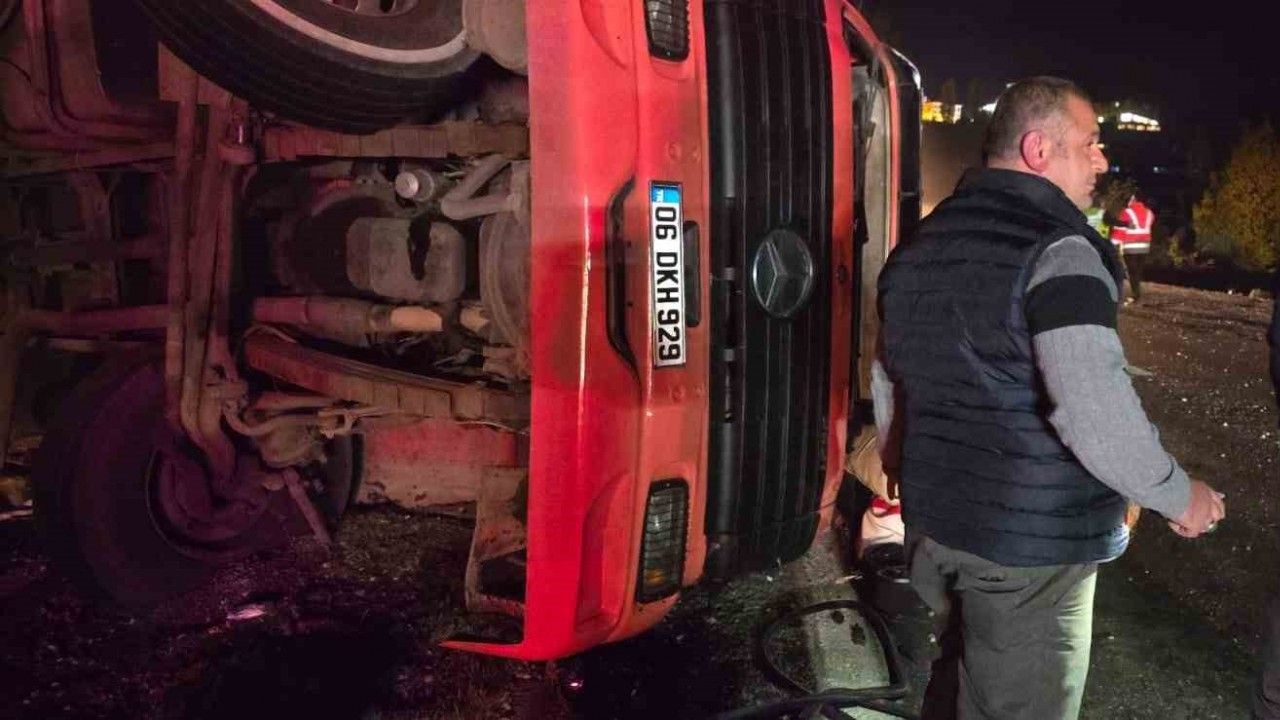 Ankara’nın Haymana ilçesinde mangal kömürü yüklü tırın virajı alamayarak devrilmesi sonucu meydana gelen kazada 1 kişi yaralandı.