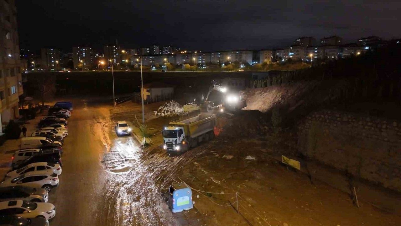 Ankara’nın Yenimahalle ilçesinde yağmur sonrası Batıkent’te istinat duvarı çöktü.