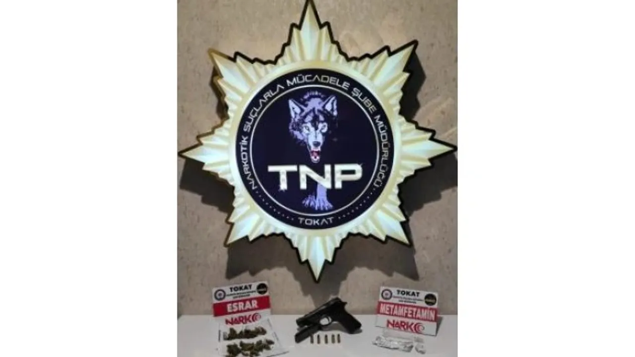 Tokat Emniyet Müdürlüğü Narkotik Suçlarla Mücadele Şube Müdürlüğünce yapılan çalışmalar çerçevesinde, Tokat iline uyuşturucu madde getirdiği tespit edilen 1 şüphelinin aracı Turhal ilçesinde durduruldu. Durdurulan araçta yapılan aramada; 17 gram esrar, 2,5 gram metamfetamin, 1 adet bong, 1 adet ruhsatsız tabanca, 1 adet şarjör ve 5 adet fişek ele geçirildi. Şüpheli hakkında gerekli yasal işlemler başlatıldı.