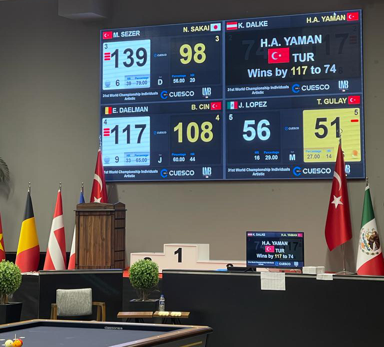 “32 sporcunun katıldığı Dünya Artistik Bilardo Şampiyonasında grup maçlarında 2 galibiyet ve bir yenilgi ile (ilk maçımı %68, 2. maçımı % 79 oynayarak) son 16’ya kaldım, başta her zamanki desteklerinden ötürü canım eşim Şeyda İnce Sezer’e, beni izlemeye gelen ve destekleyen ana sponsorum Bilkent Laboratuvar ve Uluslararası Okulu’nun değerli yöneticilerine, sponsorlarım Eurasia Hand Made Cues, Çamlıbel Belediyesi ve Tokat Baro Başkanlığı’na, canım arkadaşlarım (İzmir ve İstanbul’dan gelen) Çağdaş ve Süleyman’a ve beni destekleyen takip eden tüm dost ve arkadaşlarıma sonsuz teşekkür ederim. Yarın çeyrek finale kalma mücadelesine çıkacağım artık şampiyonanın tek maçlık eleme kısmına geçtik. Maçım saat 13.30’da , dilerseniz bu maçı https://billiards.afreecatv.com/ adresinden izleyebilirsiniz. (Not: Mehmet Sezer, sayfasında aynı zamanda İngilizce olarak da çağrıda bulundu ve yarın çeyrek finale kalma maçı oynayacağını duyurdu. / I made it to last 16 in World Artistic Billiard Championship, thanks for all your support, tomorrow knock out phases will be played.)