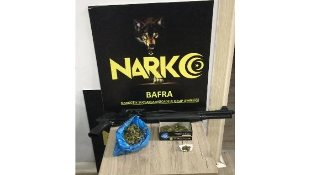 Samsun'un Bafra ilçesinde bir evde yapılan aramada 92 gram kubar esrar ile 1 adet ruhsatsız tüfek ele geçirildi, 1 kişi gözaltına alındı.