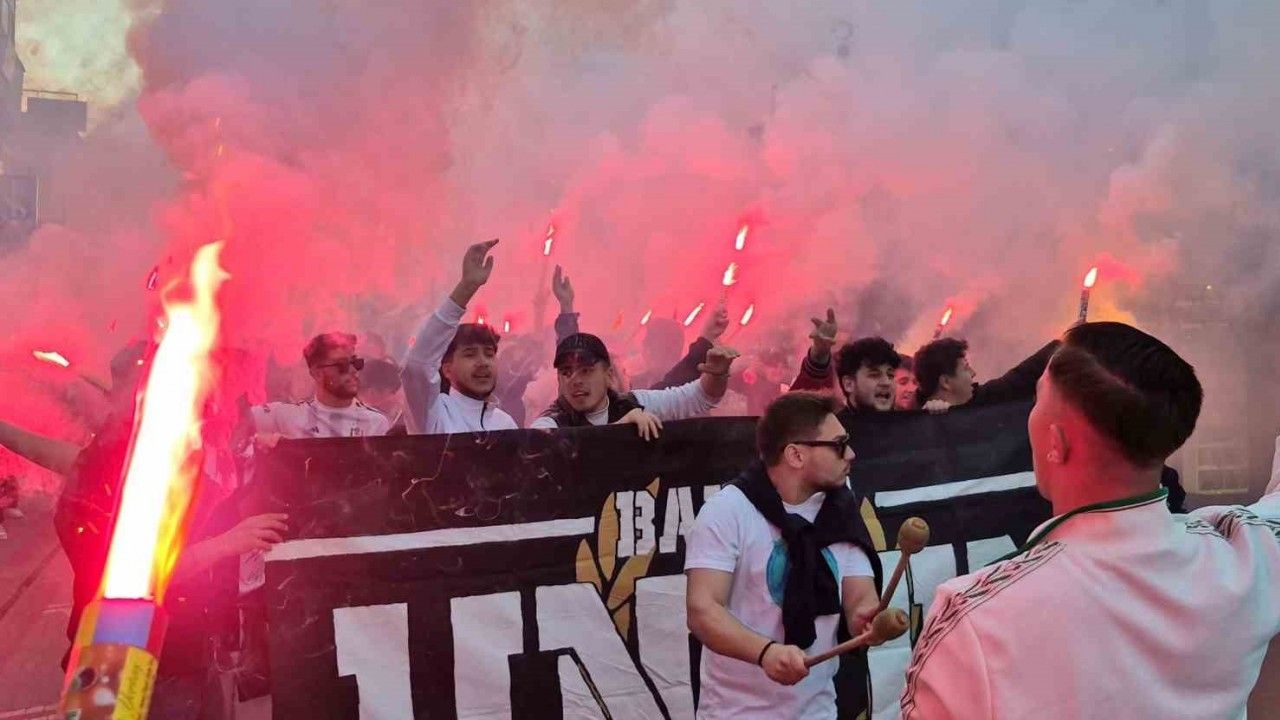 Bartın’da Yukarıçarşı’da toplanan Fenerbahçeli ve Beşiktaş taraftarlar, meşaleler ve tezahüratlar eşliğinde yürüdü. Heyecan yaşayan taraftarlar, şehir merkezindeki asma ve şadırvan bölgelerindeki kafelere kadar yürüdü.