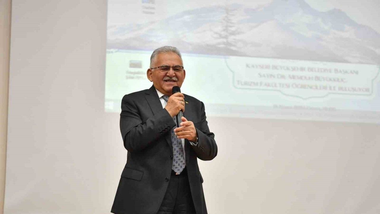Kayseri Büyükşehir Belediye Başkanı Dr. Memduh Büyükkılıç, Turizm Haftası etkinlikleri kapsamında Erciyes Üniversitesi Turizm Fakültesi’nde öğrencilere yönelik ‘Kayseri’nin Turizm Değerleri’ konulu sohbet gerçekleştirdi.