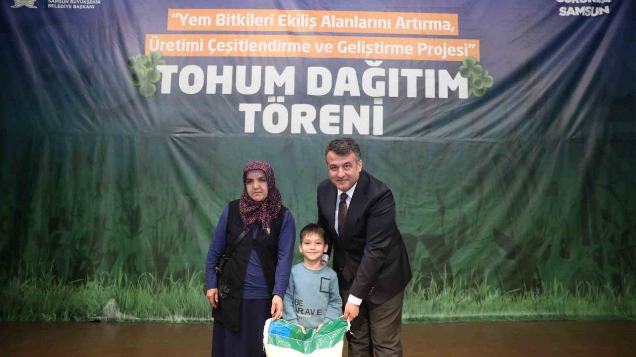 Samsun Büyükşehir Belediyesi tarafından "Yem Bitkileri Ekiliş Alanlarını Artırma, Üretimi Çeşitlendirme ve Geliştirme Projesi" kapsamında Vezirköprü’de çiftçiye tohum dağıtımı yapıldı. Törende, çiftçilere dağıtılmak üzere 2 bin 883 paket silajlık mısır tohumu, bin 734 paket yonca tohumu ve 287 paket çim tohumu gibi ürünler teslim edildi. Bu tohumlar, bölgedeki yem bitkisi üretimini artırmak ve kaba yem talebini karşılamak amacıyla kullanılacak.