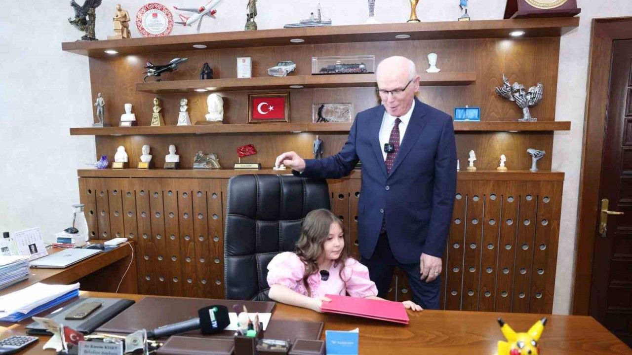 Odunpazarı Belediye Başkanı Kazım Kurt makamını, 23 Nisan Ulusal Egemenlik ve Çocuk Bayramı nedeniyle 9 yaşındaki Miray Durdu’ya bıraktı.