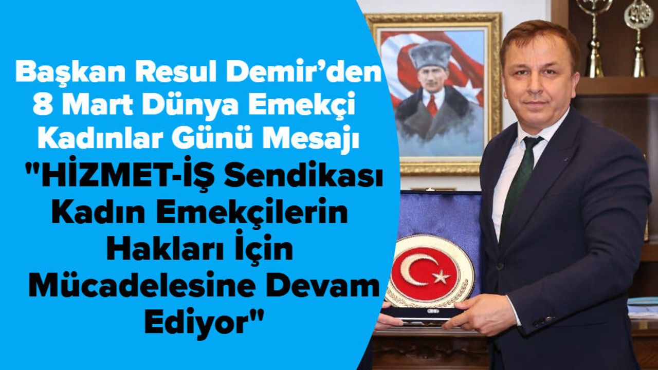 Kadın emekçilerin haklarının güvence altına alınması ve çalışma yaşamında daha adil koşullara kavuşmaları için mücadeleye devam edeceklerini belirten Demir, “HİZMET-İŞ olarak, kadın emekçilerimizin sesi olmaya, onların hak ettikleri değeri görmeleri için çalışmaya devam edeceğiz. 8 Mart Dünya Emekçi Kadınlar Günü’nü kutluyor, tüm kadınlara eşit, adil ve güvenli bir çalışma hayatı diliyoruz.” ifadelerini kullandı.
