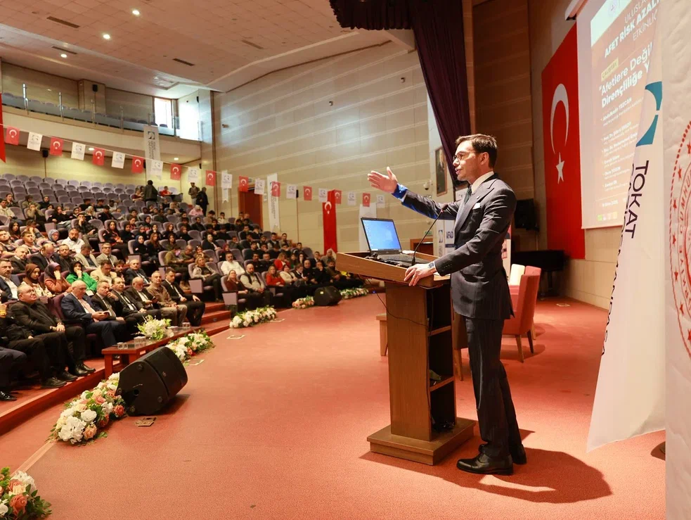 Belediye Başkanı Mehmet Kemal Yazıcıoğlu yaptığı konuşmada, “Tokat, sadece bir şehir değildir; Yeşilırmak havzasının belleği, kadim ticaret yollarının kavşağı, tarih boyunca pek çok medeniyetin izlerini taşıyan bir kültür ocağıdır. Tokat Kalesi’nden Gökmedrese’ye, hanlarından çarşılarına, yazmacılığından el sanatlarına kadar bu şehir; birikimi, direnci ve irfanıyla Anadolu’nun hafızasını bugüne taşır. İşte biz bugün burada, bu hafızayı geleceğe güvenle aktarmanın yolunu konuşuyoruz: afette değil, afete dirençte buluşmak. Malumunuz son yıllarda dünya genelinde ve ülkemizde meydana gelen afetlerin sayısında ve şiddetinde bir artış gözlenmektedir. Maalesef ki bu durum ciddi hasar ve kayıplara neden olmaktadır. Afetlerdeki bu artış toplumların güvenli yaşam alanları için de açık bir tehdit oluşturmaktadır. Bu tehditle baş edebilmenin ana stratejisi afet risklerini azaltarak kentleri ve yaşam alanlarını daha güvenli hale getirmektir.” Dedi.