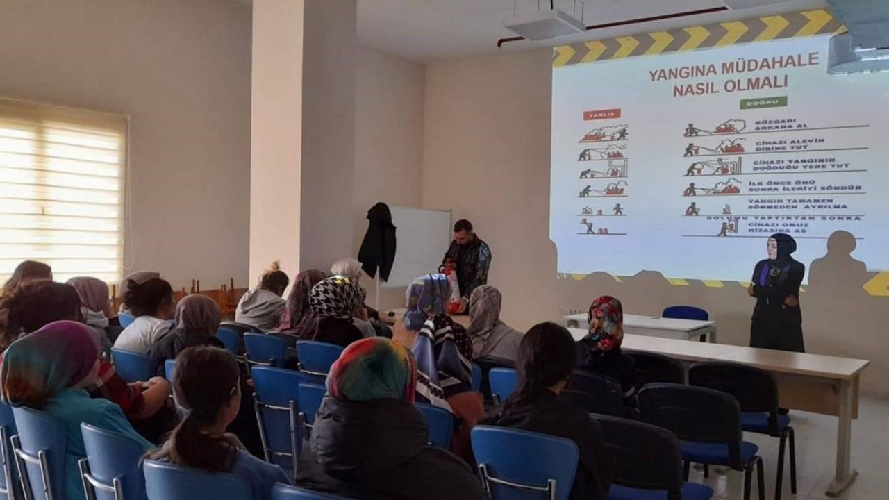 Yurt müdürü ve İş Sağlığı ve Güvenliği uzmanlarınca öğrencilere elektrik, asansör arızaları, yangın ve deprem anında izlenecek yol ve tahliye planıyla ilgili bilgiler verildi.