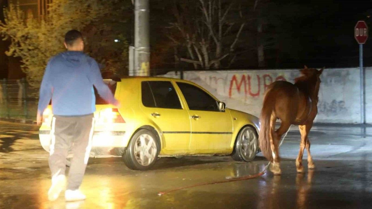 Aksaray’da gece yarısı şehir merkezinde caddede gezen başıboş at herkese sürpriz olurken, trafiği tehlikeye düşürmesi üzerine atı gören vatandaşlar durumu belediyeye bildirdi. Belediyedeki görevliler ise kimi vatandaşa ’başıboş ata belediyenin bakmadığını’ söylerken, kimi vatandaşa da ’Atı bağlayın, biz alırız’ cevabını verdi. Bunun üzerine trafikte ciddi tehlike oluşturan at, sürücü ve vatandaşların yağmur altında 1,5 saatlik mücadelesiyle yakalanarak parka alınıp bağlandı.