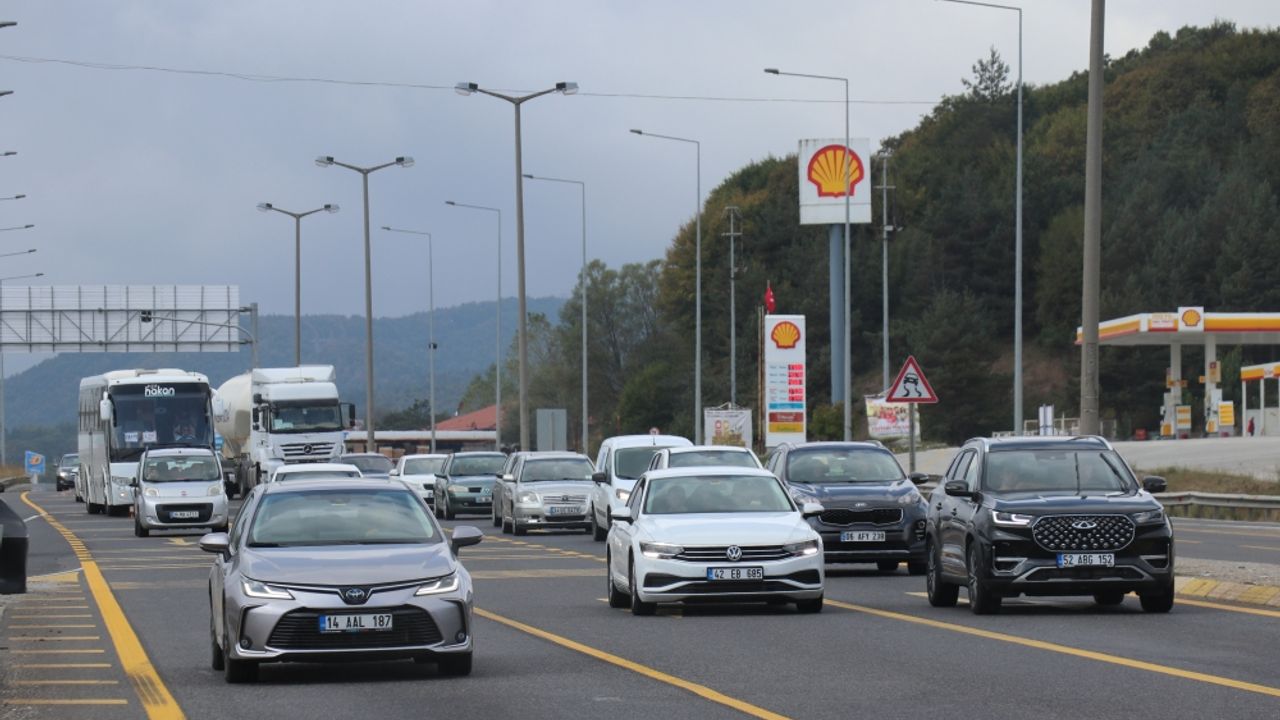 Anadolu Otoyolu'ndaki onarım çalışması kapsamında Ankara yönünün ulaşıma kapatılması nedeniyle Kaynaşlı Gişeleri'nden D-100 kara yoluna dahil olanların da etkisiyle araç yoğunluğu yaşanıyor.