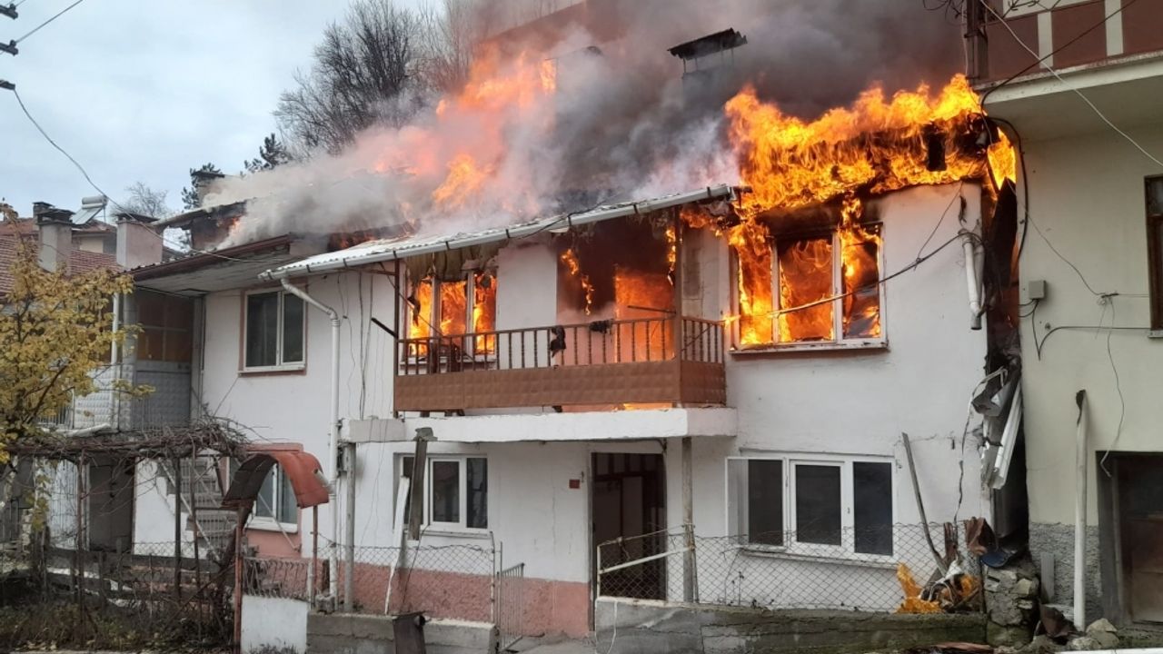 Yıldırım Beyazıt Mahallesi 50. Yıl Sokak'ta, Metin Güder'e ait iki katlı ahşap evde henüz bilinmeyen bir nedenle yangın çıktı.