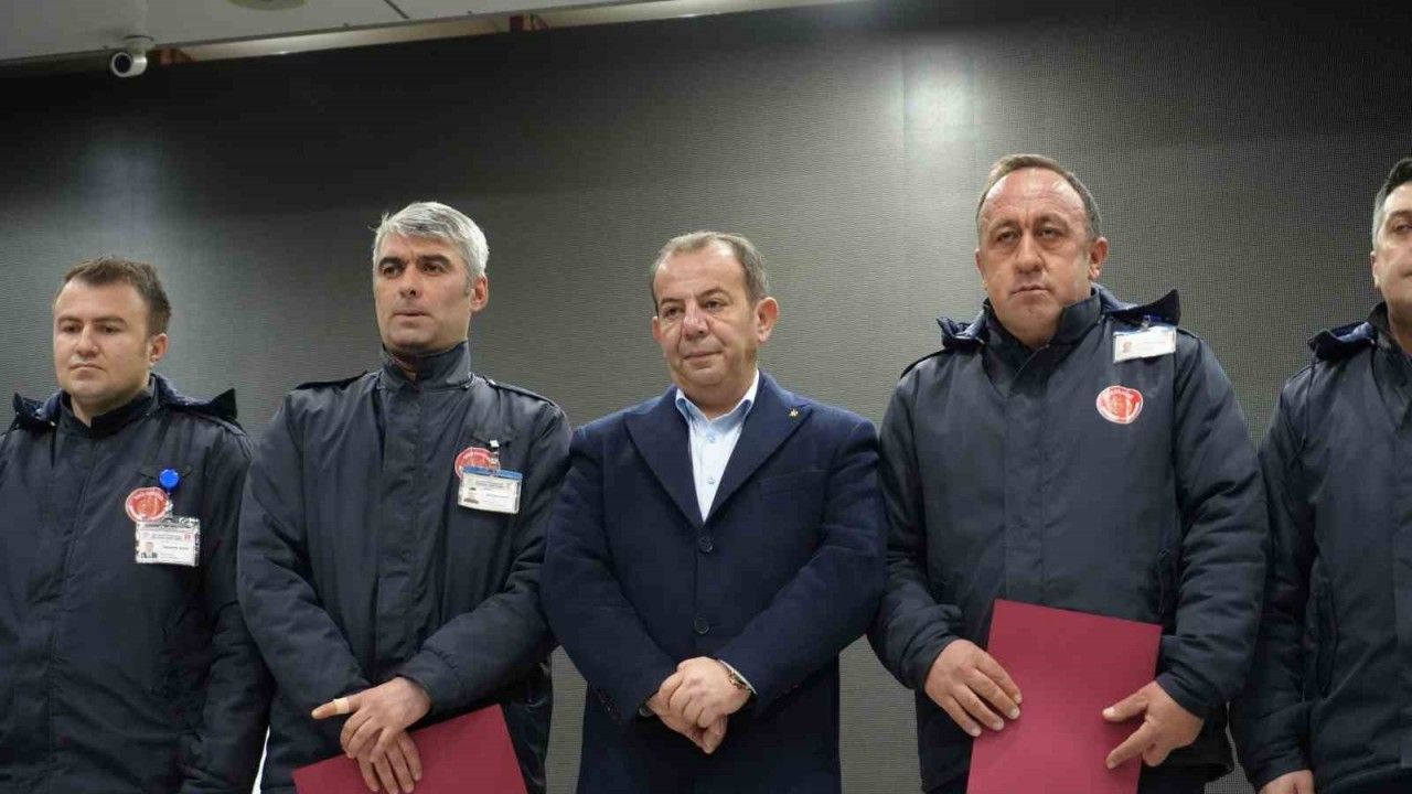 Bolu Belediye Başkanı Tanju Özcan, otel faciasında yaptıkları çalışmalardan dolayı itfaiye personeline ve tutuklu bulunan kişilerin eşlerine ‘Hizmet Şeref Belgesi’ verdi.