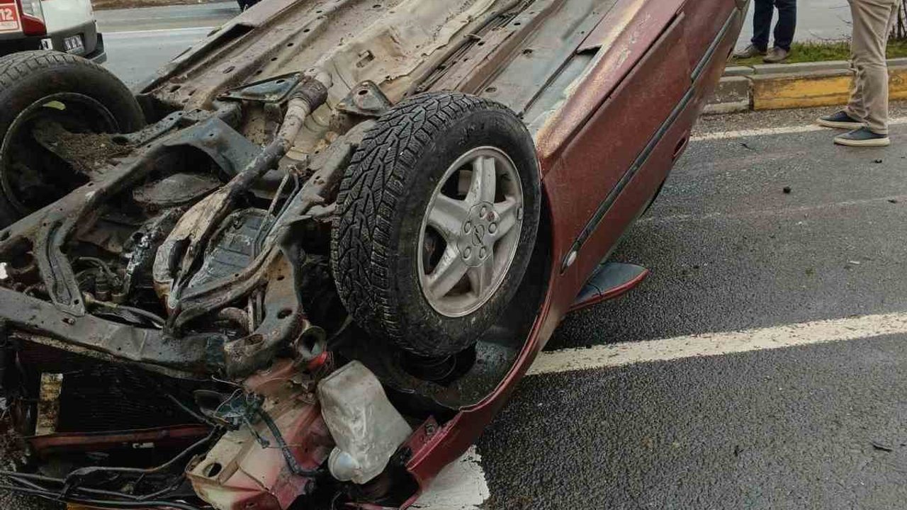 Bolu'nun Yeniçağa ilçesinde refüjdeki trafik ışığı direğine çarpan otomobilin takla attığı kazada 1 kişi yaralandı.