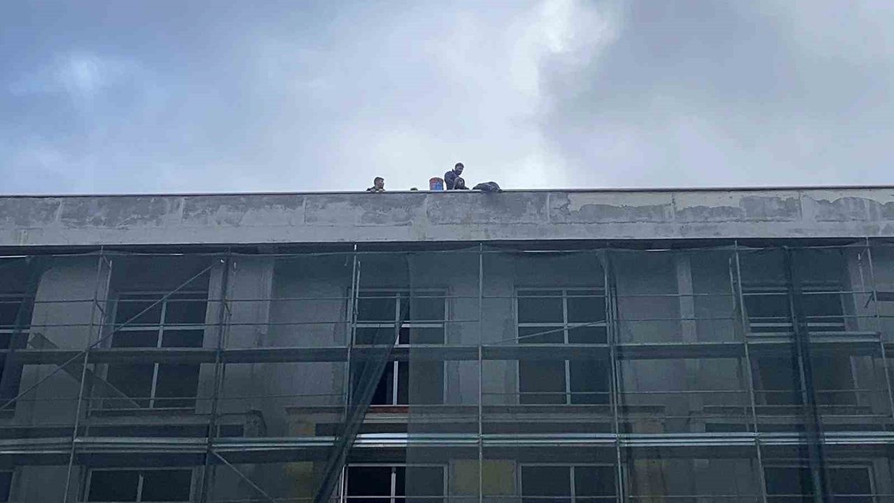 Bolu'da yaklaşık 1.5 yıldır devam eden uygulama okulu inşaatında çalışan 8 işçi, 3 aydır maaşlarını alamadıklarını ileri sürerek inşaatın çatısında eylem yaptı.