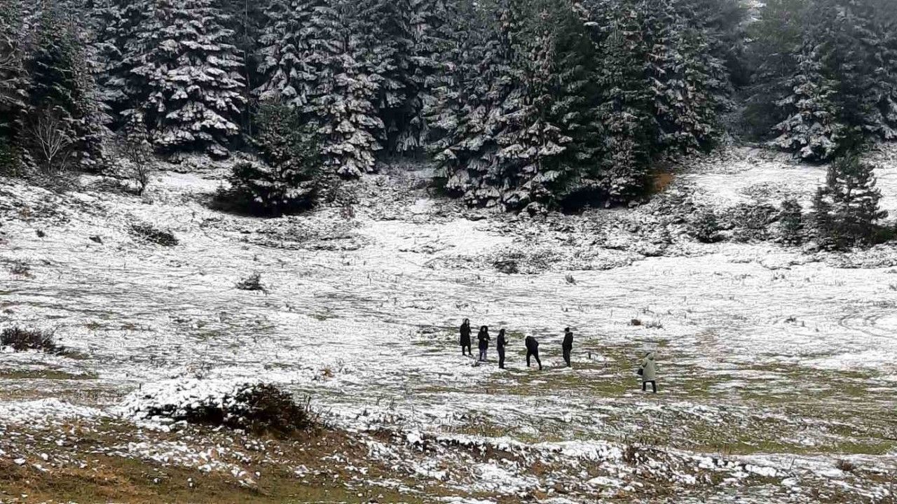 Bolu’nun yüksek kesimlerinde dün gece etkili olan kar yağışı nedeniyle yeşil alanlar beyaz örtüyle kaplandı.