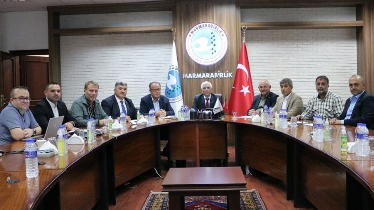Zeytinde hasat dönemi başlarken Marmarabirlik önemli bir buluşmaya ev sahipliği yaptı. Gemlik, Mudanya, İznik, Nilüfer, Erdek ve Bandırma Ziraat Odaları Başkanları Marmarabirlik Yönetim Kurulu Başkanı Hidamet Asa ve Genel Müdür İsmail Acar ile bir araya geldi.BURSA (İGFA) - Bursa'da Marmarabirlik'in Başköy tesislerinde gerçekleşen ve yaklaşık iki saat süren toplantıda taraflar, ürün alım fiyatları ve zeytinin üretim maliyetleri konusunda istişare edildi.