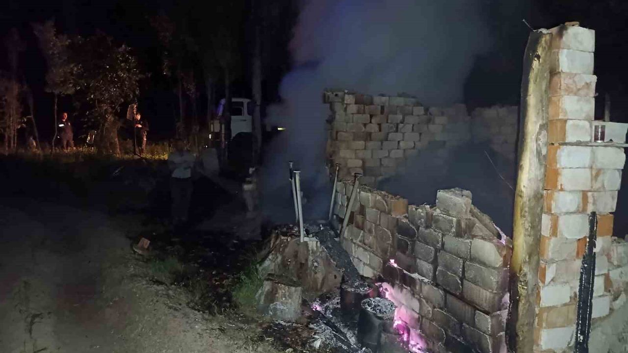 Çankırı’nın Korgun ilçesinde alevlere teslim olan çok sayıda kavak ağacı zarar görürken, bir baraka kullanılmaz hale geldi.