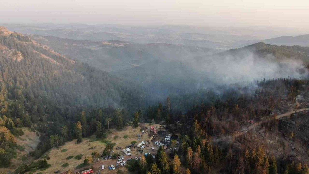 Öte yandan, yanan ormanlık alan havadan görüntülendi.
