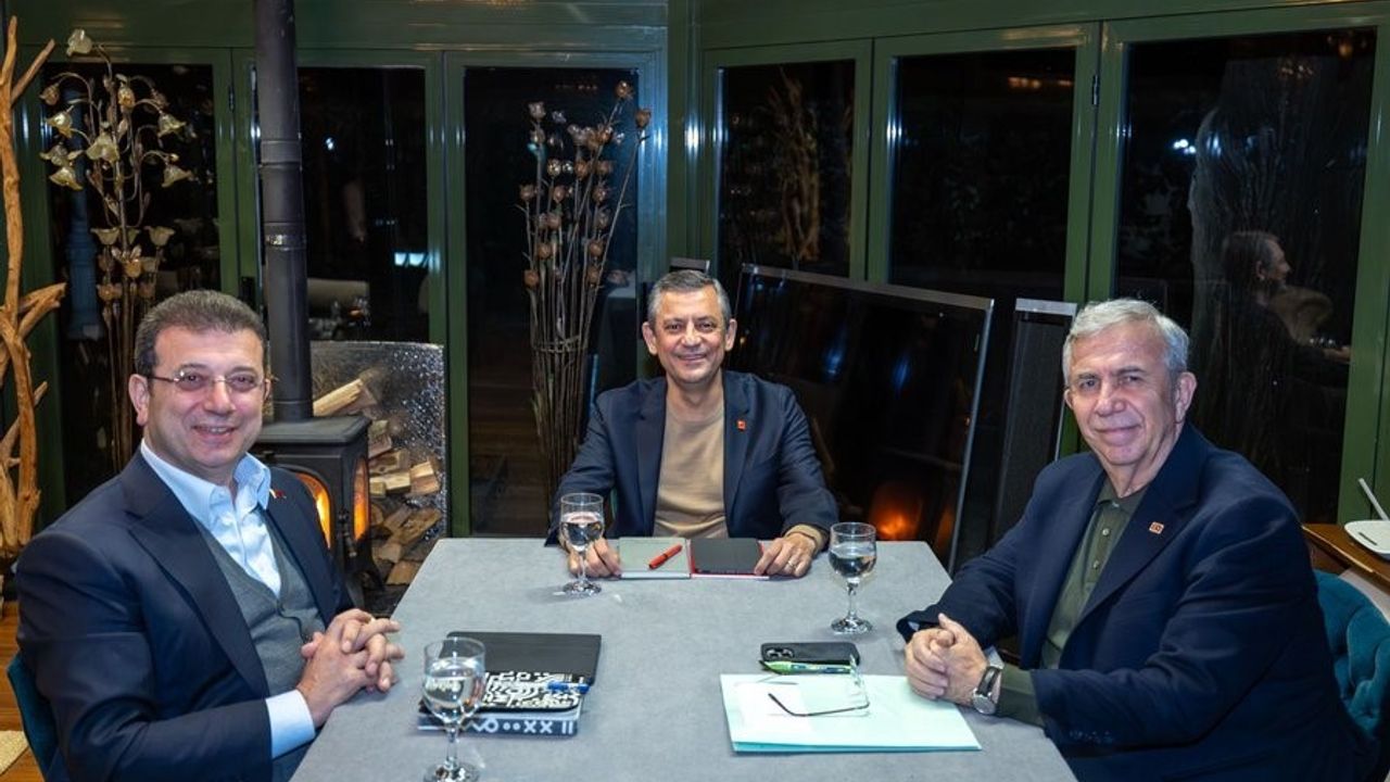 CHP Genel Başkanı Özgür Özel, İstanbul Büyükşehir Belediye Başkanı Ekrem İmamoğlu ve Ankara Büyükşehir Belediye Başkanı Mansur Yavaş ile akşam yemeğinde bir araya geldi. Başkan Yavaş’ın ev sahipliğinde gerçekleşen görüşme 2,5 saat sürdü. CHP Genel Başkanı Özel, üçlü görüşmenin ardından sosyal medya hesabından yaptığı paylaşımda, "Birlikteyiz, hep birlikte olacağız, hep beraber kazanacağız, Türkiye kazanacak" ifadelerini kullandı.