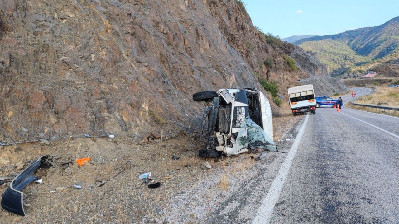 ÇORUM (AA) - Çorum'un Oğuzlar ilçesinde devrilen minibüsteki 2 kişi yaralandı.