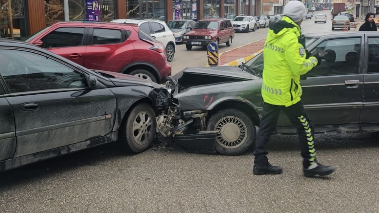 Aydın G. (50) idaresindeki 34 CFY 977 plakalı otomobil ile karşı yönden gelen Emre T'nin (39) kullandığı l19 AF 143 plakalı otomobil Yeniyol Mahallesi Kıbrıs Caddesi'nde çarpıştı.