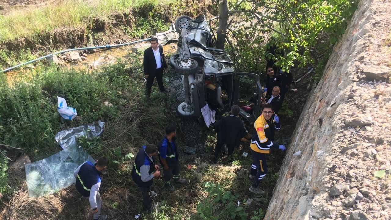 Kazada sürücü ile araçta bulunan A.Y. (74) ve F.Ş. (43) yaralandı.