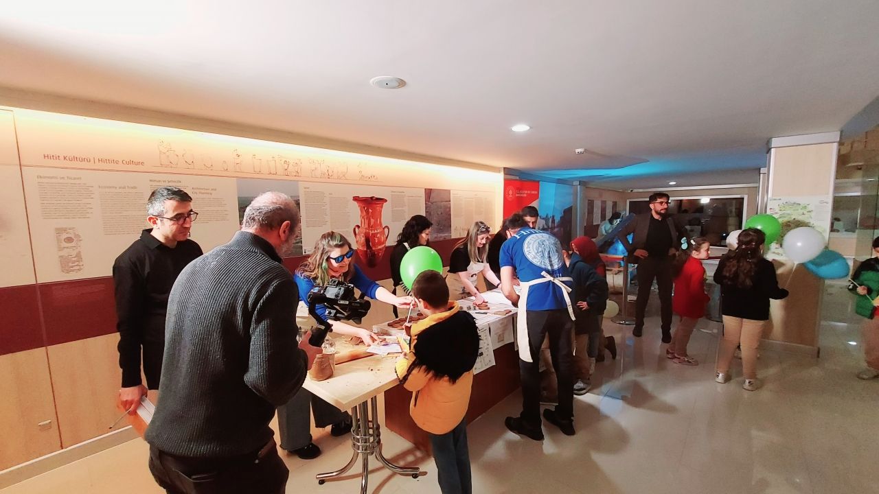 Öğrenciler, Çocuk Eğitim Atölyesinde de çivi yazılı tablet yazma, kil tabletlere Hitit Mühürleri baskısı ve Ara-Bul etkinlikleri yaptı.