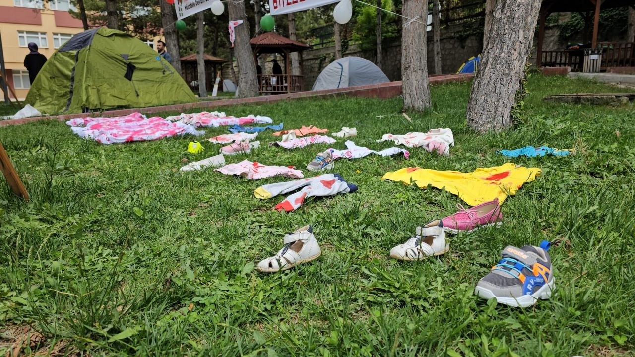 Hitit Üniversitesi Teknik Bilimler Meslek Yüksekokulu bahçesinde başlatılan oturma eyleminde öğrenciler çadır kurarak pankart açtı.