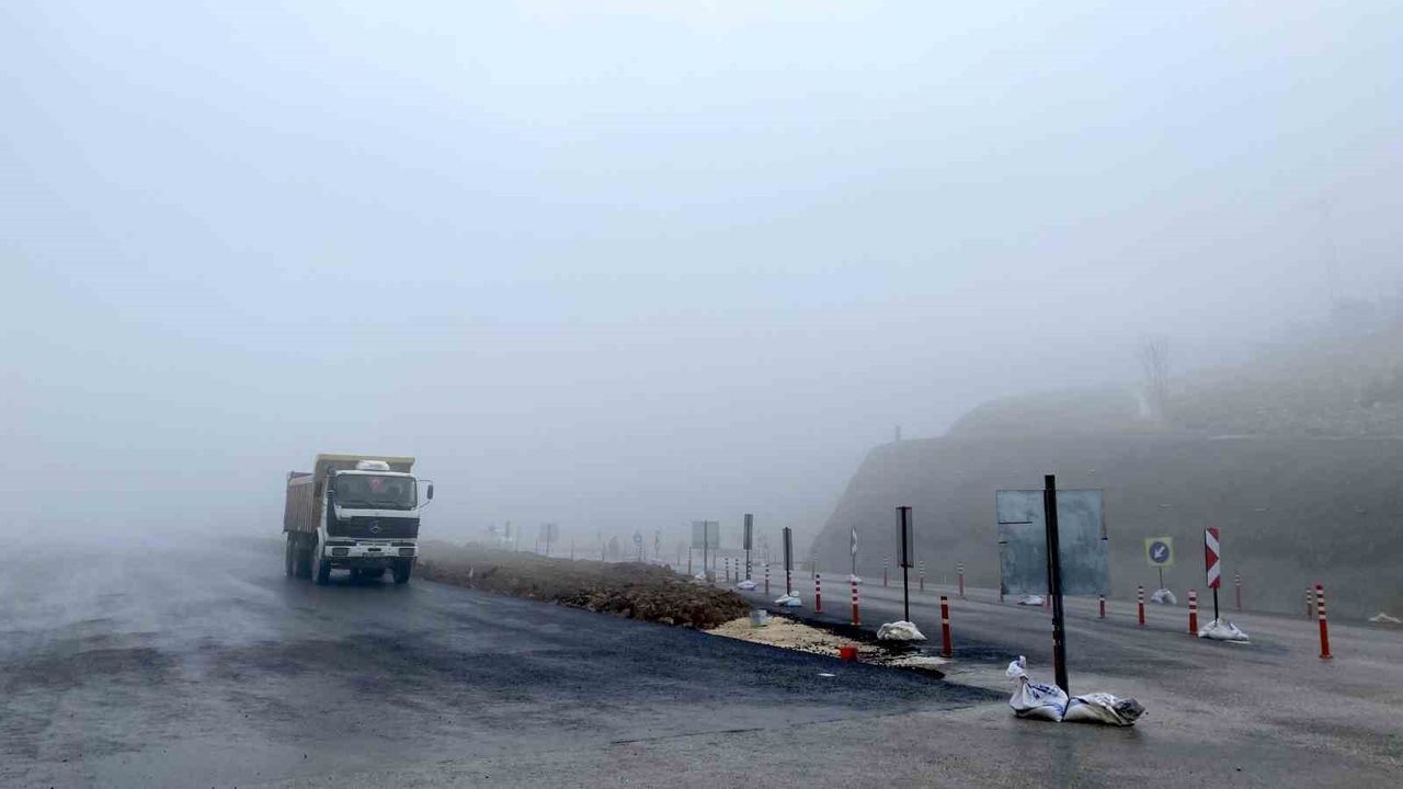 Çorum'un Laçin ilçesi Kırkdilim mevkiinde yoğun sis etkili oldu.