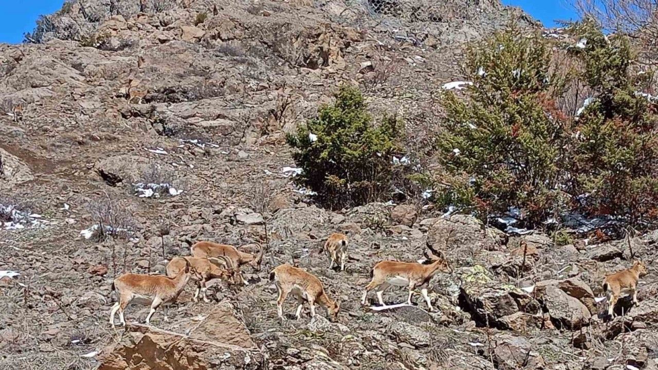 Dağ keçilerinin görüldüğü güzergâhtan geçen bir vatandaş, "Hay kuzular, hay ceylanlar" diyerek, nesli tükenme tehlikesi bulunan, avlanması yasak ve koruma altındaki dağ keçilerini cep telefonuyla kaydetti. Vatandaşın cep telefonu kamerasına yansıyan görüntülerde, sürü halinde gezen keçilerin, sarp ve engebeli dik tepeyi kolaylıkla tırmandığı görülüyor.
