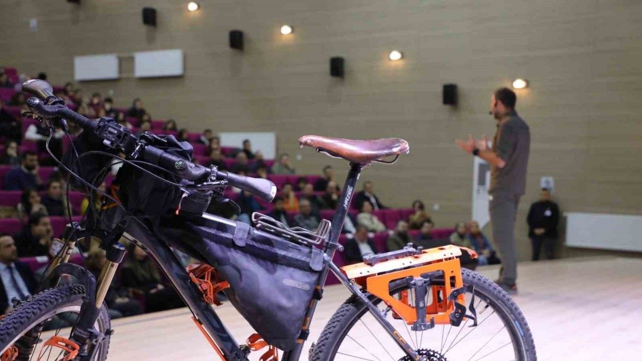 Bartın Üniversitesindeki (BARÜ) söyleşide, bisikletiyle çıktığı dünya turunda 10 yılda 122 bin kilometre yol yaparak 68 ülkeyi gezen “Demir Atlı Adam” lakaplı Gürkan Genç öğrencilerle bir araya geldi.