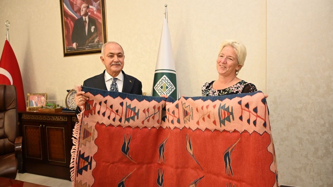 Konuşmaların ardından Belediye Başkanı Kadir Kara, UNDP Türkiye Mukim Temsilcisi Louisa Vinton’a kilim hediye etti.