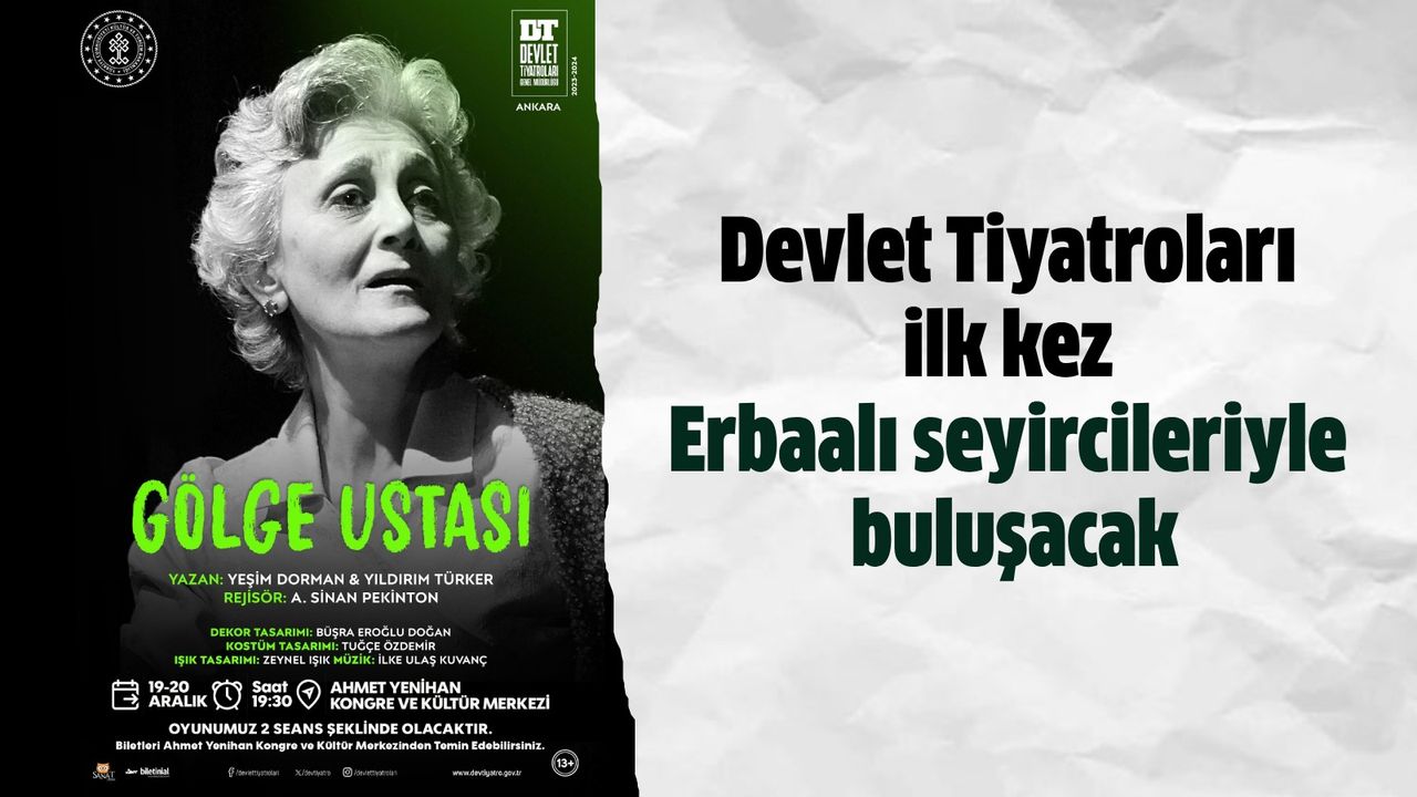 Devlet Tiyatrolarının ilk kez Erbaalılarla buluşacağını belirten Erbaa Belediye Başkanı Ertuğrul Karagöl “Devlet Tiyatroları ilk kez Erbaalılarla buluşuyor. Belediyemizin organizasyonuyla 19 ve 20 Aralık tarihlerinde 2 seans olarak Ahmet Yenihan Kongre ve Kültür Merkezinde sahnelenecek ‘Gölge Ustası’ adlı oyuna tüm hemşehrilerimizi bekliyoruz.” dedi.